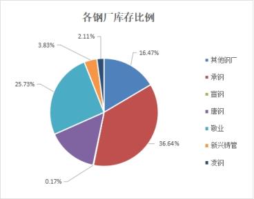 從各無縫厚壁無縫鋼管廠家比例來看,承鋼重回大哥位置,敬業(yè)次之仍有一定距離,唐鋼暫居第三,其他無縫厚壁無縫鋼管廠家緊隨其后,2672凌鋼分列五六幾乎并駕齊驅(qū),宣鋼存量已經(jīng)很小。