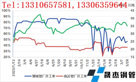據(jù)網(wǎng)監(jiān)測數(shù)據(jù)顯示,截至28日山東臨沂、聊城、濰坊、煙臺地區(qū)21家樣本96條產(chǎn)線開工率46.65%,環(huán)比下降2.8%,成材庫存47.92萬噸,同比下降4.52%。而主流市場庫存總量76.78萬噸,同比上升1.95%。管廠以及市場庫存在3月初達到峰值后,隨著月中期貨短暫反彈階段需求市場有小批量抄底的操作,但庫存壓力依舊不小。