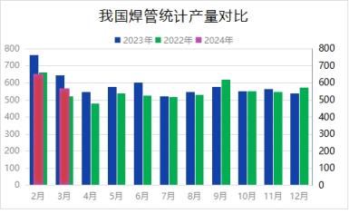 一、3月國內(nèi)焊接無縫鋼管產(chǎn)量同比減少78.3萬噸