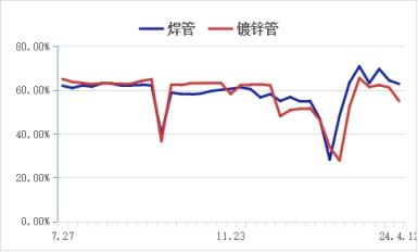 津冀區(qū)域管廠焊鍍管產(chǎn)能利用率走勢圖