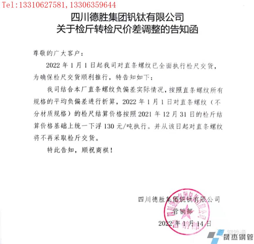 免責(zé)聲明:本網(wǎng)站(山東聊城晟杰無(wú)縫鋼管廠www.frdimp.com)刊載的“四川多家鋼企發(fā)布檢斤轉(zhuǎn)檢尺價(jià)差調(diào)整通知”等均源于網(wǎng)絡(luò),版權(quán)歸原作者所有,且僅代表原作者觀點(diǎn),本文所載信息僅供參考。轉(zhuǎn)載僅為學(xué)習(xí)與交流之目的,如無(wú)意中侵犯您的合法權(quán)益,請(qǐng)及時(shí)聯(lián)系刪除。本網(wǎng)站刊登此篇文章并不意味著本站贊同其觀點(diǎn)或證實(shí)其內(nèi)容的真實(shí)性,我們不對(duì)其科學(xué)性、嚴(yán)肅性等作任何形式的保證。如果侵犯了您的版權(quán),請(qǐng)盡快聯(lián)系我們予以撤銷(xiāo),謝謝合作!