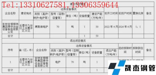 吉林吉鋼鋼鐵集團泰華冶金設(shè)備制造有限公司擬于2022年4月在長春市九臺區(qū)工業(yè)集中區(qū)B區(qū)新建70t康斯迪電爐1座,產(chǎn)能50萬噸/年,項目預(yù)計2024年4月投產(chǎn)。同時計劃退出70t電爐1座,產(chǎn)能50萬噸/年,預(yù)計在新項目投產(chǎn)前拆除。