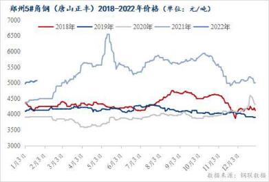 從近五年價格來看,2021年整體價格較往年明顯抬升,以鄭州5#角鋼(唐山正豐)為例,2021年均價較2020同期上升36.96%,最高點為五月份6550元/噸,比2020年十二月份峰值高1950元/噸。進(jìn)入本月,河南地區(qū)型鋼價格小幅上漲,1月份雖然河南多地疫情頻發(fā),交通運輸管控加嚴(yán),下游采購進(jìn)度受限,整體需求表現(xiàn)不佳,但受到原材料鐵礦及環(huán)保政策等因素的影響,價格趨強(qiáng)運行。截止目前,河南疫情得以有效控制,考慮到春節(jié)假期過后,下游逐步復(fù)工,需求好轉(zhuǎn),預(yù)計市場價格有一定上漲空間。
