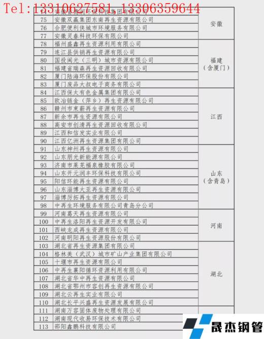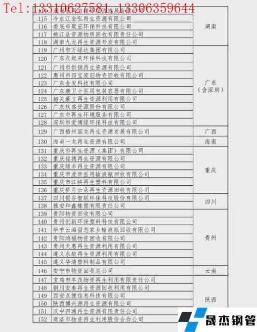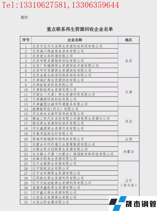 重點聯(lián)系再生資源回收企業(yè)名單: