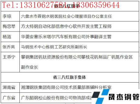 除了這些獲得全國(guó)三八紅旗手、全國(guó)三八紅旗集體榮譽(yù)的鋼鐵巾幗之外,不少省市也發(fā)布了2021年度的省三八紅旗手名單,其中也有不少人是來自各地鋼企的個(gè)人和集體: