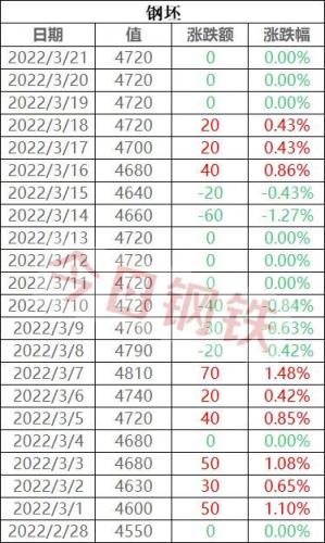 從近期的市場價格來看,目前厚壁管市場的價格仍然無下降態(tài)勢,而且厚壁管成本指數(shù)也在增加,但受到需求的影響,挺價意愿較弱。短期內(nèi)厚壁管價格下降的態(tài)勢不明顯,后期暫時會出現(xiàn)一種有價無市的局面,迫使價格走低。而厚壁管目前的走貨量也將在短期內(nèi)減少。以螺紋鋼為例小編整理如下:
