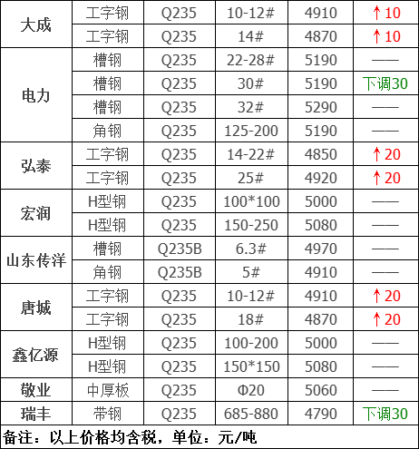 今日型、板材共9家鋼廠調(diào)價(jià)發(fā)布,其中: