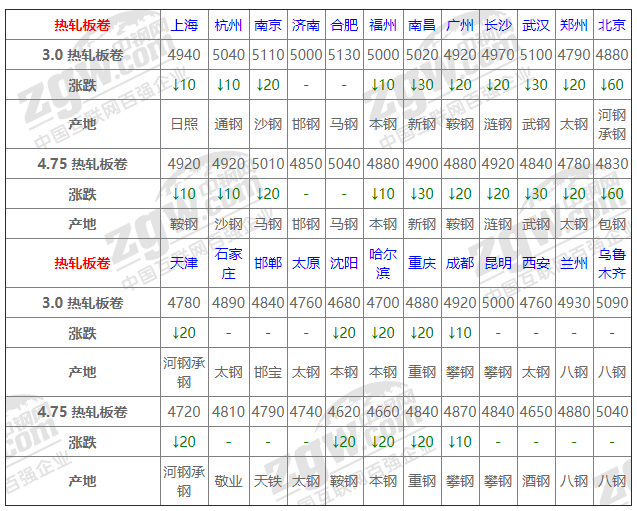 1月17日熱軋板卷價(jià)格:穩(wěn)中下調(diào);