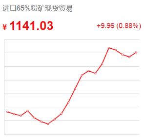 19日,根據(jù)今日鐵礦的價格顯示,進口65%粉礦現(xiàn)貨貿(mào)易價格漲9.96收于1141.03元/噸,漲幅0.88%;進口65%粉礦到岸價漲1.05收于155.65美元/噸;國產(chǎn)65%鐵精礦走穩(wěn)收于1008.16元/噸。