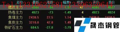 今日螺紋主力期貨跌94,收報(bào)4686,跌幅1.97%;熱卷主力跌73,收報(bào)4823,跌幅1.49%;焦煤主力漲27.5,收報(bào)2438.5,漲幅1.14%;焦炭主力漲47,收報(bào)3210,漲幅1.49%;鐵礦石主力跌27,收報(bào)684.5,跌幅3.79%。