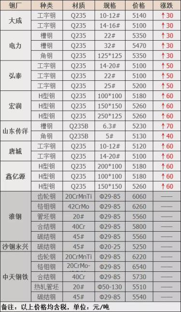 今日型、特鋼共10家無縫鋼管廠家調(diào)價發(fā)布,其中: