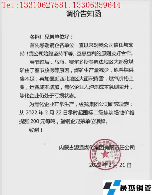 考慮運(yùn)費(fèi)等價格上漲,自2月22日零時起對二級焦炭價格上調(diào)200元/噸,具體內(nèi)容如下: