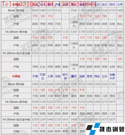 全國23個(gè)主要市場14-20mm 低合金中板平均價(jià)格5399元/噸,較上個(gè)交易日上調(diào)7元/噸。