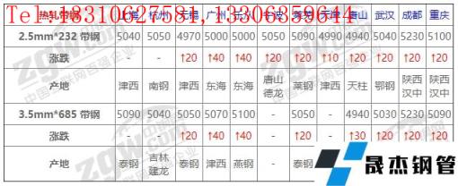 全國12個(gè)主要市場2.5mm*232 帶鋼平均價(jià)格5042元/噸,較上個(gè)交易日上調(diào)19元/噸。