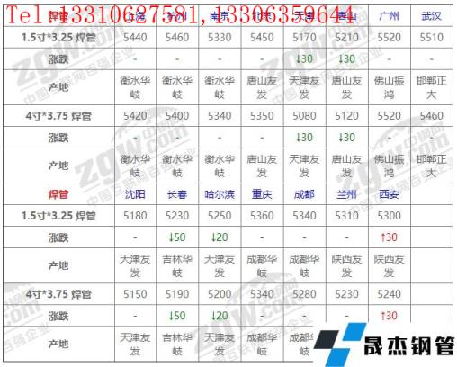 全國(guó)15個(gè)主要市場(chǎng)1.5寸*3.25 焊管平均價(jià)格5337元/噸,較上個(gè)交易日下調(diào)7元/噸。