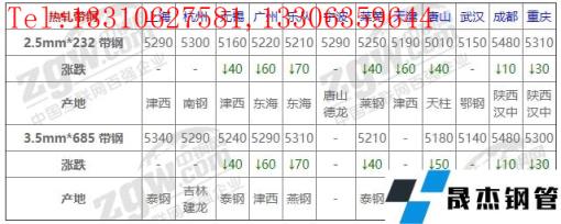 全國(guó)12個(gè)主要市場(chǎng)2.5mm*232 帶鋼平均價(jià)格5238元/噸,較上個(gè)交易日下調(diào)30元/噸。