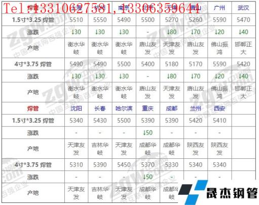 全國(guó)15個(gè)主要市場(chǎng)1.5寸*3.25 焊管平均價(jià)格5435元/噸,較上個(gè)交易日下調(diào)23元/噸。