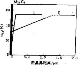 ▲圖8鉻在晶界碳化物附近的分布1-650℃×2h 2-800℃×2h