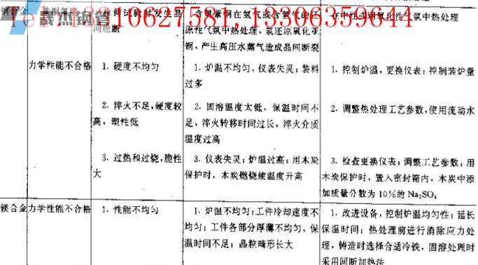 ▼表3有色金屬熱處理常見力學(xué)性能缺陷及防止方法