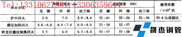 數(shù)據(jù)表明,感應(yīng)回火的疲勞壽命較爐中回火為高。其原因是,感應(yīng)快速加熱時,最表層首先瞬時產(chǎn)生馬氏體分解,使體積收縮處于相變超塑性階段,待整體回火完成后表層形成更大的壓應(yīng)力,具有一個更理想的有利于提高疲勞強度的應(yīng)力分布;而爐內(nèi)加熱緩慢沒有這種條件。(3)半軸感應(yīng)加熱表面淬火舉例,40MnB鋼制造的帶法蘭半軸的表面淬火工藝技術(shù)要求見表8 ,其淬火工藝可以采用連續(xù)加熱淬火和整體一次加熱淬火,工藝參數(shù)見表9 和表10 。▼表840MnB鋼半軸表面感應(yīng)淬火技術(shù)要求