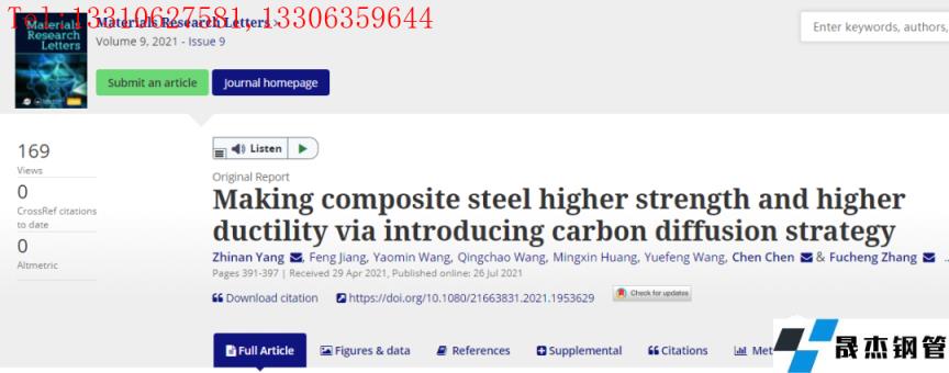在本研究中,燕山大學提供了一種新的元素擴散策略,即輕元素(如碳)的長程擴散。與初始整體馬氏體鋼相比,該策略不會降低每一層的機械性能,并提高復合馬氏體鋼的強度和延展性。相關研究成果以題“Making composite steel higher strength and higher ductility via introducing carbon diffusion strategy”發(fā)表在國際著名期刊Materials Research Letters上。