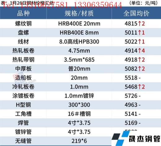 1月26日,國(guó)內(nèi)鋼材市場(chǎng)小幅上漲為主,唐山鋼坯出廠價(jià)格穩(wěn)報(bào)4480元/噸。成交方面,工程項(xiàng)目大多進(jìn)入到收尾階段,新一輪降溫雨水天氣來(lái)臨,成交整體繼續(xù)縮量。