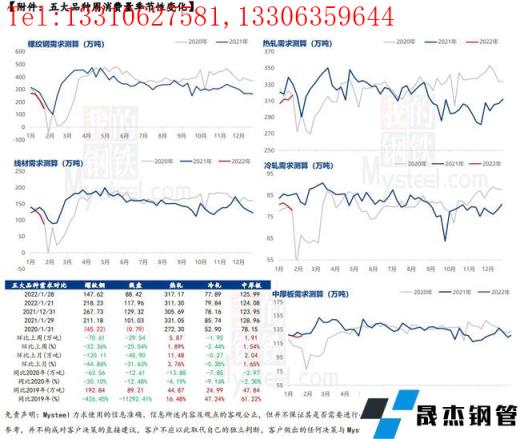 本周五大品種周消費量降幅突出,主要原因在于建材品種庫存增幅突出,但供應減量有限;而板材品種供應和庫存均未有明顯變化,因此整體消費受建材品種影響出現(xiàn)大幅下降。從下游消費來看,節(jié)前最后一周,全國大面積雨雪天氣來襲,以及員工停休放假,需求基本停滯。