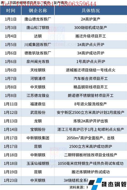 免責聲明:本網站(山東聊城晟杰無縫鋼管廠www.frdimp.com)刊載的“1月國內20個鋼鐵項目開工、投產和復產”等均源于網絡,版權歸原作者所有,且僅代表原作者觀點,本文所載信息僅供參考。轉載僅為學習與交流之目的,如無意中侵犯您的合法權益,請及時聯(lián)系刪除。本網站刊登此篇文章并不意味著本站贊同其觀點或證實其內容的真實性,我們不對其科學性、嚴肅性等作任何形式的保證。如果侵犯了您的版權,請盡快聯(lián)系我們予以撤銷,謝謝合作!