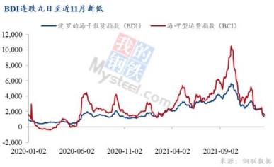 波羅的海干散貨運(yùn)價(jià)指數(shù)(BDI)是反映全球礦石、煤炭等大宗散貨運(yùn)價(jià)的權(quán)威指標(biāo)。近三個(gè)月來(lái),因?yàn)樗行痛枨笃\?,截?022年1月24日,波羅的海干散貨運(yùn)價(jià)指數(shù)連續(xù)第十二個(gè)交易日下滑至1391點(diǎn),為去年2月以來(lái)最低水準(zhǔn);BCI跌至891點(diǎn)為2020年6月以來(lái)新低。