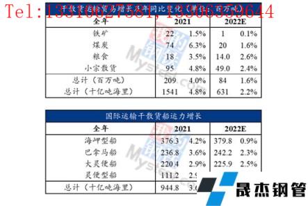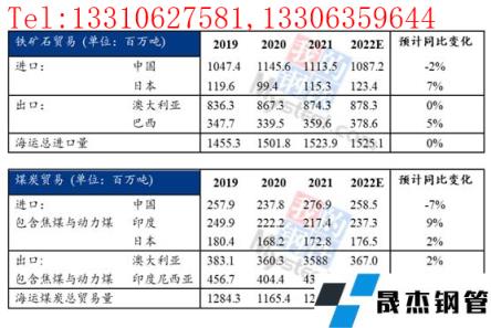 全球海運(yùn)鐵礦石貿(mào)易在2021全年達(dá)到15.24億噸,同比增長(zhǎng)1.5%,但增速預(yù)計(jì)將在2022年繼續(xù)放緩,因?yàn)橹袊?guó)的進(jìn)口預(yù)計(jì)將繼續(xù)從2020的創(chuàng)紀(jì)錄水平回落,這是由于鋼材需求疲軟和鋼鐵產(chǎn)量的限制。從的247無(wú)縫鋼管廠家鐵水生產(chǎn)節(jié)奏也能展現(xiàn)端倪:10月開(kāi)始,鐵水產(chǎn)量就一路走低,最終于12月中旬,247樣本鐵水日產(chǎn)量跌至歷史最低值198.7萬(wàn)噸。