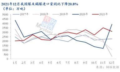 煤炭是與鐵礦石海運(yùn)貿(mào)易體量相當(dāng)?shù)牧硪淮笞谏唐罚?0月開(kāi)始國(guó)內(nèi)原煤產(chǎn)量在增產(chǎn)保供下不斷提高,也變相著削弱中國(guó)對(duì)海外煤的依賴:我國(guó)10-12月份原煤產(chǎn)量分別為3.6、3.7、3.8億噸屢創(chuàng)國(guó)內(nèi)新高,對(duì)海外煤炭需求逐漸減弱,12月我國(guó)進(jìn)口煤炭同比下滑20%。步入2022年1月,印尼煤炭出口禁令對(duì)海運(yùn)市場(chǎng)算是雪上加霜。