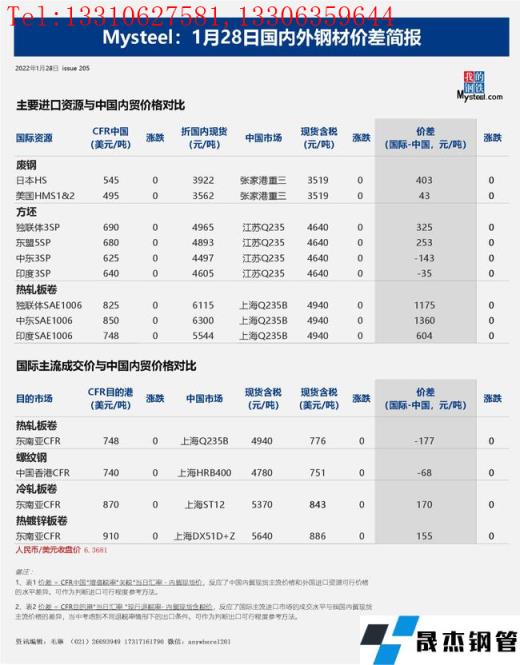 免責聲明:本網(wǎng)站(山東聊城晟杰無縫鋼管廠www.frdimp.com)刊載的“2022年01月28日日報:國內(nèi)外鋼材_無縫鋼管價差匯總(2022.1.28)”等均源于網(wǎng)絡(luò),版權(quán)歸原作者所有,且僅代表原作者觀點,本文所載信息僅供參考。轉(zhuǎn)載僅為學習與交流之目的,如無意中侵犯您的合法權(quán)益,請及時聯(lián)系刪除。本網(wǎng)站刊登此篇文章并不意味著本站贊同其觀點或證實其內(nèi)容的真實性,我們不對其科學性、嚴肅性等作任何形式的保證。如果侵犯了您的版權(quán),請盡快聯(lián)系我們予以撤銷,謝謝合作!