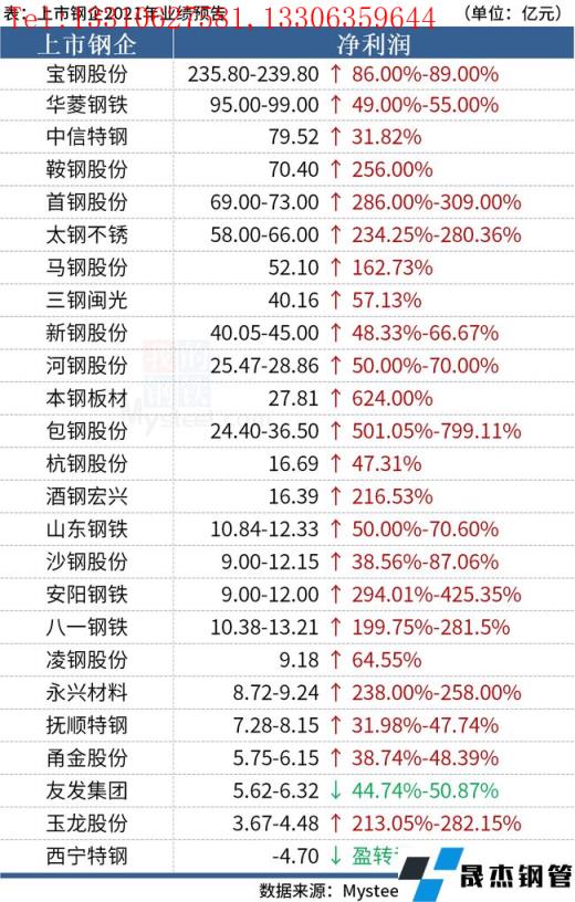 此外,鞍鋼股份、首鋼股份、太鋼不銹、包鋼股份、安陽(yáng)鋼鐵、本鋼板材、八一鋼鐵、永興材料、玉龍股份等9家企業(yè)預(yù)計(jì)2021年凈利潤(rùn)翻倍增長(zhǎng)。其中,包鋼股份預(yù)計(jì)凈利潤(rùn)增長(zhǎng)5至8倍,增幅最大。