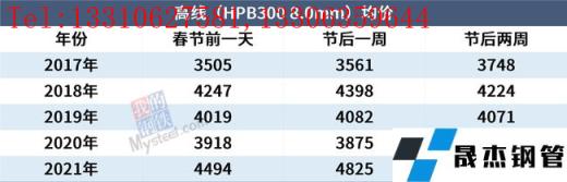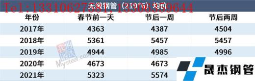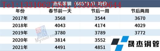 小編匯總近5年春節(jié)后兩周全國主要城市13大品種厚壁無縫鋼管均價(jià)走勢,以供參考。