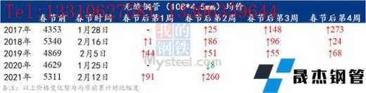 免責聲明:本網(wǎng)站(山東聊城晟杰無縫鋼管廠www.frdimp.com)刊載的“近5年春節(jié)前后無縫鋼管市場走勢”等均源于網(wǎng)絡(luò),版權(quán)歸原作者所有,且僅代表原作者觀點,本文所載信息僅供參考。轉(zhuǎn)載僅為學習與交流之目的,如無意中侵犯您的合法權(quán)益,請及時聯(lián)系刪除。本網(wǎng)站刊登此篇文章并不意味著本站贊同其觀點或證實其內(nèi)容的真實性,我們不對其科學性、嚴肅性等作任何形式的保證。如果侵犯了您的版權(quán),請盡快聯(lián)系我們予以撤銷,謝謝合作!
