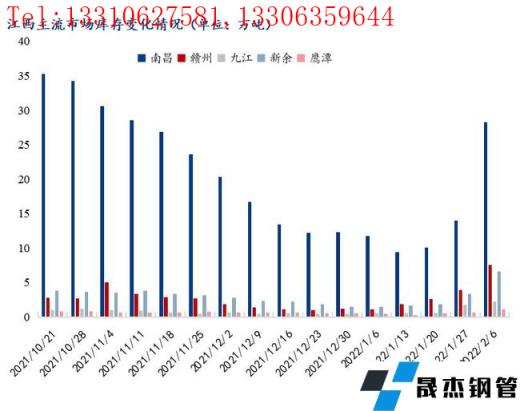 從本周各主流市場(chǎng)庫(kù)存走勢(shì)來(lái)看,春節(jié)期間江西各市場(chǎng)庫(kù)存均有明顯增量。一方面,1月底江西省主流無(wú)縫厚壁鋼管廠家檢修無(wú)縫厚壁鋼管廠家基本復(fù)產(chǎn),無(wú)縫厚壁鋼管廠家正常發(fā)貨,另一方面,春節(jié)放假,省內(nèi)多數(shù)工地基本停工,終端采購(gòu)需求基本停滯,資源快速增加。
