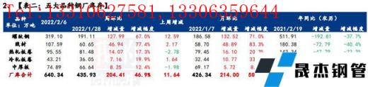 節(jié)后第一周五大品種庫存累增幅度如期加速,從日均增庫方面來說,建材和板材總庫存2022年春節(jié)期間分別日均增加41.49萬噸/天和6.27萬噸/天,同比去年分別下降19%和45%;五大品種無縫厚壁鋼管廠家?guī)齑婧蜕鐣齑?022年春節(jié)期間分別日均增加18.58萬噸/天和27.32萬噸/天,同比去年分別下降28%和26%。由此可見,今年庫存累庫幅度和速度依然預(yù)期內(nèi)低于去年同期水平。從后期庫存增幅預(yù)期來看,除2020年疫情影響累庫天數(shù)41天之外,2018年、2019年、2021年春節(jié)后累庫天數(shù)均在20天至21天,預(yù)計(jì)今年累庫天數(shù)將與此保持相對一致,累庫天數(shù)或受雨雪天氣影響略有延長,達(dá)到21至23天左右,峰值或在3月第二周期間出現(xiàn)。