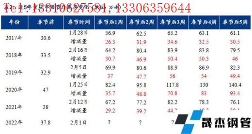 筆者整理了2017-2022年春節(jié)后5周重慶市場(chǎng)主要建材價(jià)格和庫(kù)存情況,由此可見(jiàn)除2020年因公共衛(wèi)生事件影響使得價(jià)格回落,其他幾年重慶市場(chǎng)節(jié)后都是上漲行情,而庫(kù)存方面對(duì)比節(jié)前普遍增加,高峰時(shí)期基本出現(xiàn)節(jié)后3周和4周,今年受限產(chǎn)因素影響疊加短流程無(wú)縫厚壁鋼管廠家提前檢修,節(jié)后增量或不及預(yù)期。