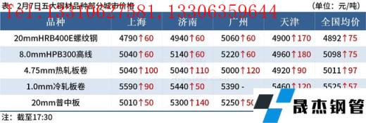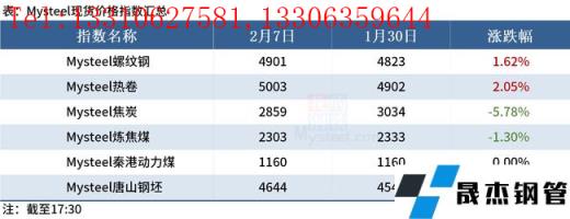 ◎ 2月7日,全國31個主要城市螺紋鋼均價4892元/噸,較節(jié)前(1月30日)上漲75元/噸;全國24個主要城市熱軋板卷均價5011元/噸,上漲97元/噸。