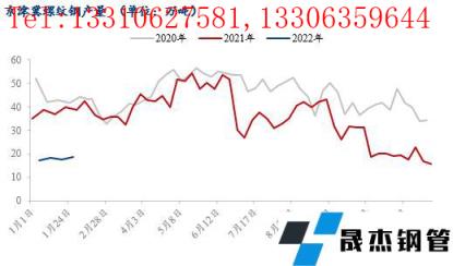 從上圖可以看出,1月份京津冀建材無縫厚壁鋼管廠家的螺紋鋼產(chǎn)量持續(xù)在低位徘徊,截至1月底,螺紋鋼周產(chǎn)量降至18.6萬噸,產(chǎn)能利用率僅為19.87%,依然是敬業(yè)、承鋼、樂鋼、鑫達等無縫厚壁鋼管廠家的螺紋鋼產(chǎn)線在產(chǎn),且這些無縫厚壁鋼管廠家螺紋鋼產(chǎn)線都未正常生產(chǎn)。2月份,京津冀建材無縫厚壁鋼管廠家的螺紋鋼產(chǎn)量變動不大,其中承鋼計劃新增一條螺紋產(chǎn)線復(fù)產(chǎn),全月計劃建材產(chǎn)量21萬噸左右,較上月實際產(chǎn)量提升9萬噸左右;樂鋼2月份高爐檢修,20日之前減少一條螺紋產(chǎn)線的產(chǎn)量,產(chǎn)量月環(huán)比減少7萬噸左右,且主要減少對京津區(qū)域的投放。另外東北、西北無縫厚壁鋼管廠家資源資源發(fā)往華南的周期較長,風(fēng)險度較大,因此東北、西北無縫厚壁鋼管廠家資源傾向于發(fā)往京津冀區(qū)域,其中海鑫計劃于1月底-2月份發(fā)往北京的資源量4萬噸左右,西林計劃往北京投放3-4萬噸,另外陜西龍鋼在1月份已向北京投放2萬噸左右資源。