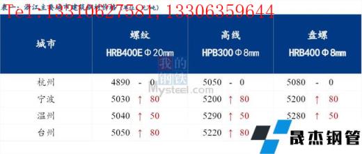 從浙江省今日價(jià)格來看,省內(nèi)價(jià)格有所上漲。其中杭州市場建筑厚壁無縫鋼管價(jià)格較昨日持平;寧波市場建筑厚壁無縫鋼管價(jià)格統(tǒng)漲80元/噸;臺(tái)州市場建筑厚壁無縫鋼管價(jià)格統(tǒng)漲80元/噸;溫州市場建筑厚壁無縫鋼管價(jià)格統(tǒng)漲50元/噸 。