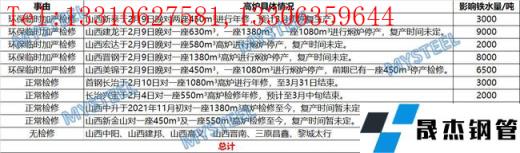 我網(wǎng)前兩日發(fā)布消息“河南、山東及河北唐山地區(qū)部分無縫厚壁鋼管廠家接到臨時限產(chǎn)加嚴通知。會在原有限產(chǎn)基礎(chǔ)上燒結(jié)全停,個別無縫厚壁鋼管廠家有新增高爐檢修,2月8日下午18點開始執(zhí)行,預計11日解除?!睂Υ耍揖W(wǎng)進行了進一步調(diào)研,山西部分區(qū)域也受之影響進行燜爐,具體情況如下: