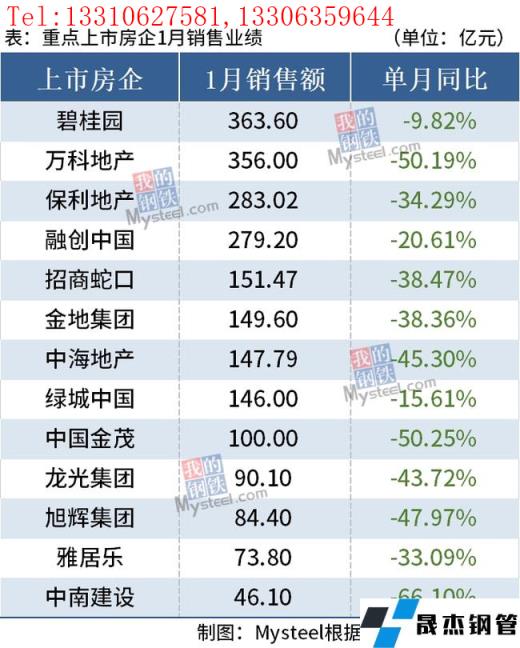 免責(zé)聲明:本網(wǎng)站(山東聊城晟杰無(wú)縫鋼管廠www.frdimp.com)刊載的“13家重點(diǎn)房企1月銷售同比大幅下滑,房地產(chǎn)市場(chǎng)低溫運(yùn)行”等均源于網(wǎng)絡(luò),版權(quán)歸原作者所有,且僅代表原作者觀點(diǎn),本文所載信息僅供參考。轉(zhuǎn)載僅為學(xué)習(xí)與交流之目的,如無(wú)意中侵犯您的合法權(quán)益,請(qǐng)及時(shí)聯(lián)系刪除。本網(wǎng)站刊登此篇文章并不意味著本站贊同其觀點(diǎn)或證實(shí)其內(nèi)容的真實(shí)性,我們不對(duì)其科學(xué)性、嚴(yán)肅性等作任何形式的保證。如果侵犯了您的版權(quán),請(qǐng)盡快聯(lián)系我們予以撤銷,謝謝合作!