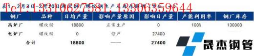 2、湖北省建材無(wú)縫厚壁鋼管廠家螺紋鋼日產(chǎn)量1.88萬(wàn)噸,周環(huán)比增加0.16噸。檢修/限產(chǎn)影響建材日產(chǎn)量為2.74萬(wàn)噸,產(chǎn)能利用率41%,周環(huán)比增加4%。