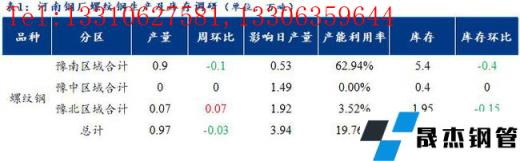 1、調(diào)研數(shù)據(jù)顯示,統(tǒng)計(jì)的河南地區(qū)10家建筑厚壁無縫鋼管樣本無縫厚壁鋼管廠家中,河南省無縫厚壁鋼管廠家線盤日均產(chǎn)量0.46萬噸,較上周小幅增加0.11萬噸;檢修/限產(chǎn)影響建材日產(chǎn)量為0.67萬噸,產(chǎn)能利用率40.71%,較上周上升9.73%。