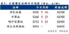 今日全國部分品種均價總體趨強(qiáng),整體漲幅為21~46元/噸。