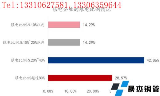 5、調(diào)研樣本企業(yè)中,存在受到限電影響的企業(yè)占比7.07%,限電比例超20%以上的占比達(dá)到71.43%,但基本是小范圍影響居多,相當(dāng)范圍以及大范圍受到限電影響的比例較小,或表明限電影響具有階段性和局部性,并未呈現(xiàn)一刀切的情況。