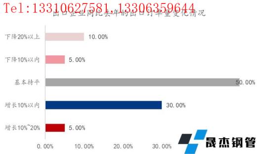 從圖26上看,20.20%的出口企業(yè)中,出口價格呈現(xiàn)不同程度上漲的企業(yè)占比為40%,基本持平的企業(yè)占比為55%,呈現(xiàn)不同程度下降的企業(yè)占比為5%。