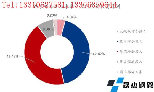 從圖30上看,未來一段時間企業(yè)會大規(guī)模增加投入的占比為4.04%,適當(dāng)增加投入的占比為42.42%,暫不增加投入的占比為43.43%,適當(dāng)縮減投入的占比為8.08%,退出部分業(yè)務(wù)的占比為2.02%。