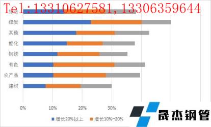 與去年同期對比來看,在經(jīng)濟下行壓力加大的情況下,調(diào)研樣本企業(yè)訂單仍然出現(xiàn)較為可觀的增長,說明國內(nèi)經(jīng)濟的韌性較強。但值得注意的是,訂單同比增加的企業(yè)數(shù)量占比較去年已經(jīng)出現(xiàn)下滑勢頭,尤其是增幅超過20%訂單的企業(yè)數(shù)量占比下滑4.2分百分點。從各行業(yè)情況來看,煤炭行業(yè)中50%的企業(yè)當前訂單量同比都有所增長,其后依次為有色、能化、農(nóng)產(chǎn)品等行業(yè),均有35%以上的訂單量增長,說明今年整體需求仍比較旺盛。
